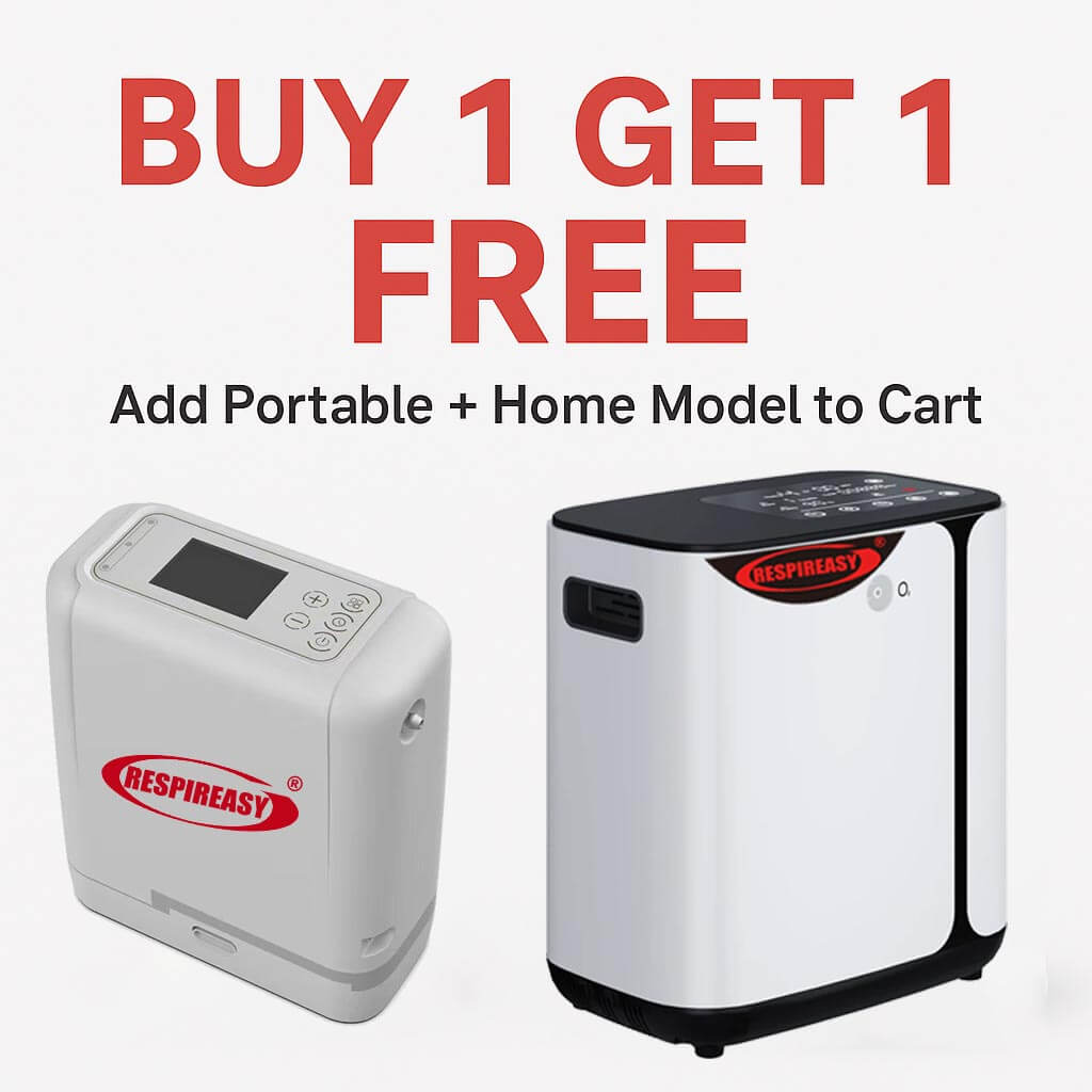 Steps: Add a portable oxygen machine and the RE-R1L home unit to your cart — get the home device free at checkout.
