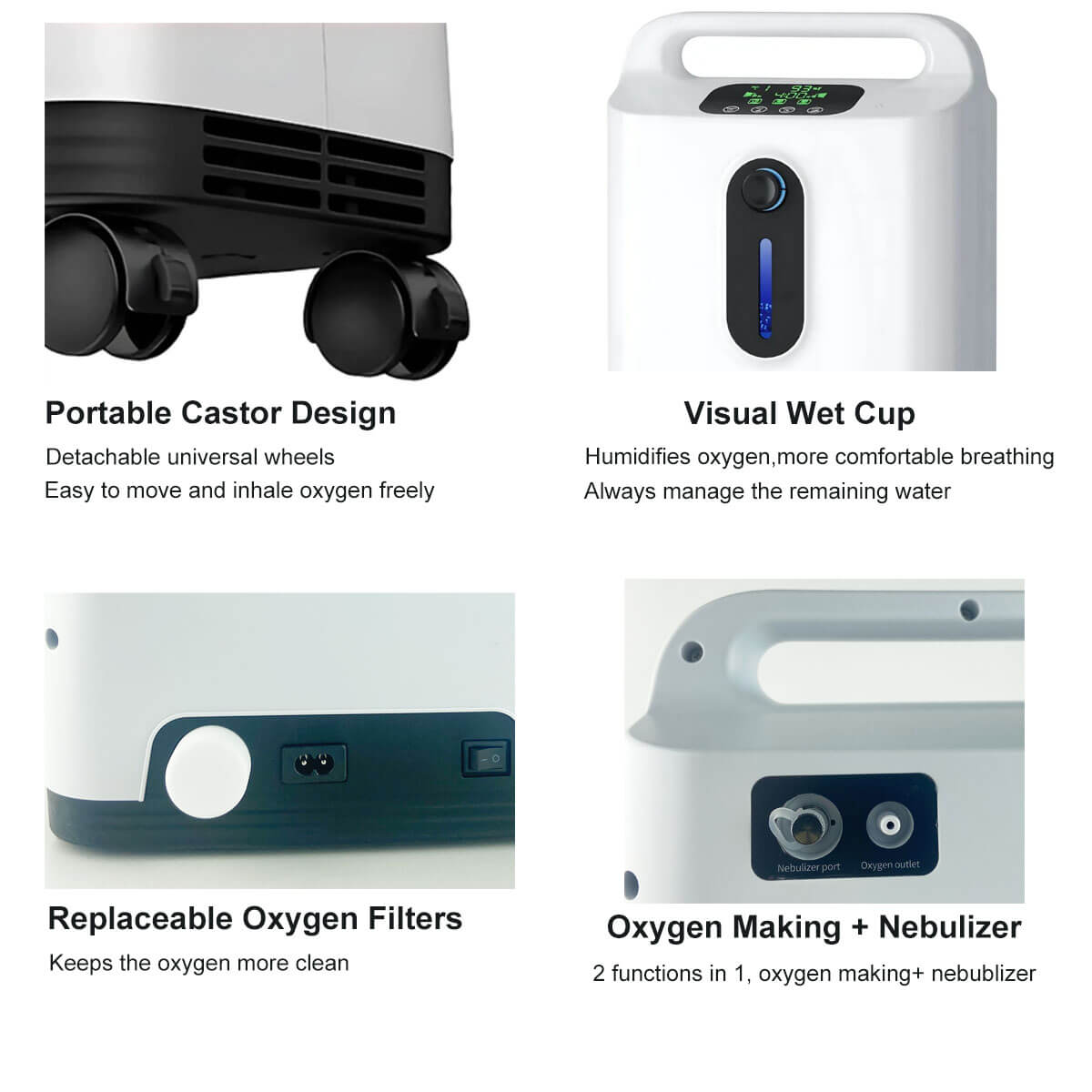 - Consulte la tabla comparativa detallada de pureza de oxígeno, caudal, nivel de ruido y rendimiento de la batería a continuación para encontrar el mejor modelo para sus necesidades de oxigenoterapia.