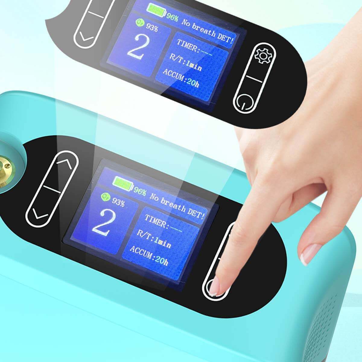• Oxygen Concentration:lt fluctuates within the range of  93%±3% (under the selected gear and breathing frequency)